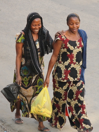 traditional African printed cotton dresses or skirts and blouses. A