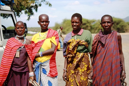for food supplies and were again greeted by sales people. Four Maasai women
