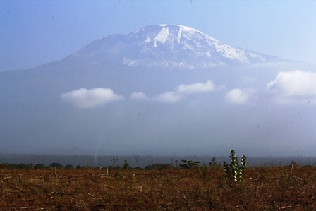 Kilimanjaro. Clouds blanketed the base but the summit was clear, suitably capped